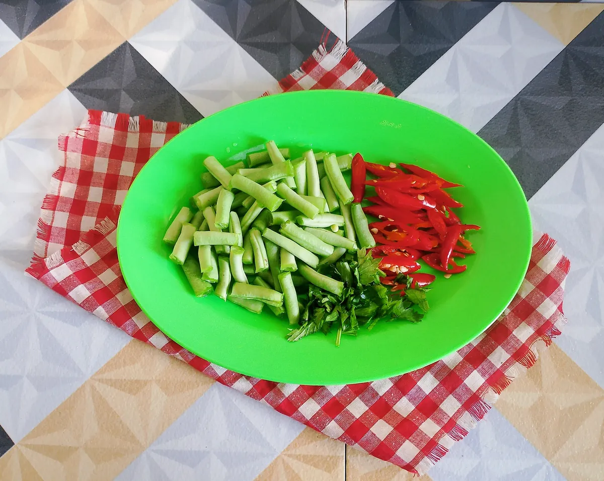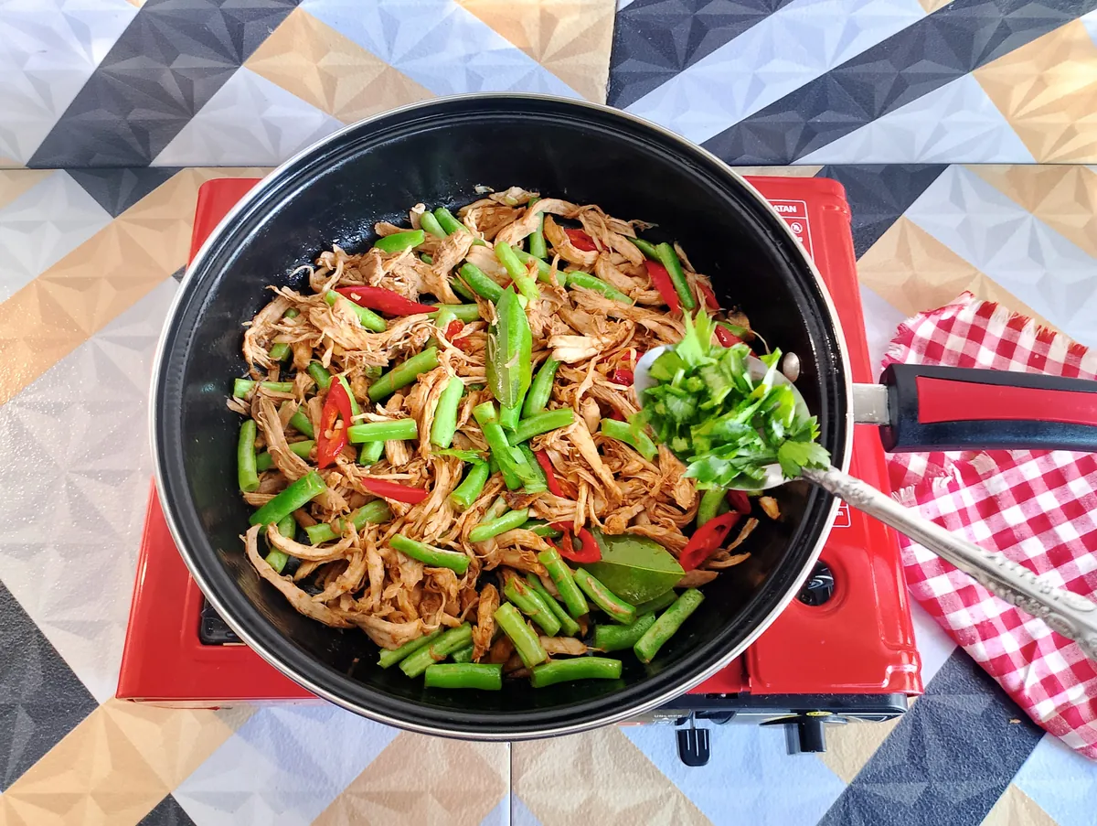 | - 200 gr Ayam Rebus Suwir. - 100 gr Buncis . |