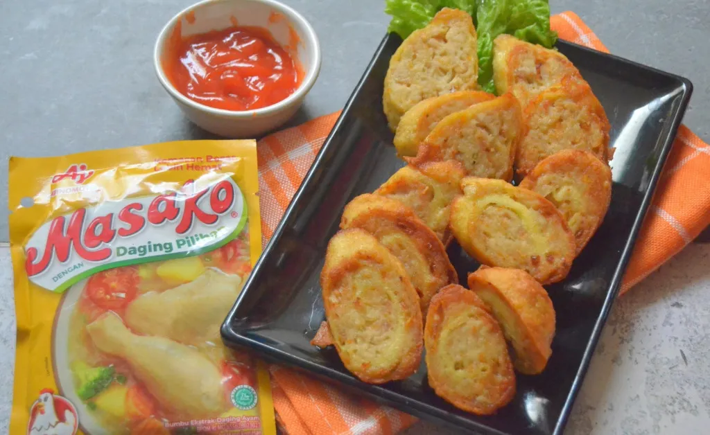 Campur daging ayam cincang, wortel serut, lada bubuk, Masako rasa daging ayam, bawang bombay dan bawang putih halus.