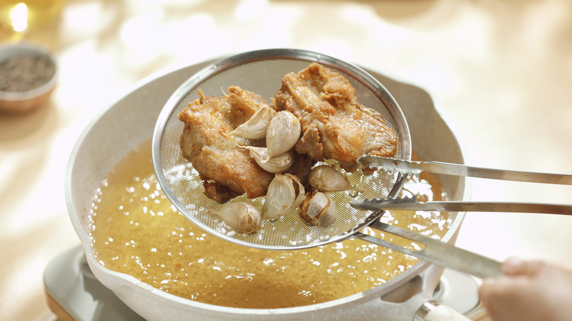 Siapa yang bisa menolak aroma lezat dari sajian ayam goreng bercampur dengan bawang putih yang khas?